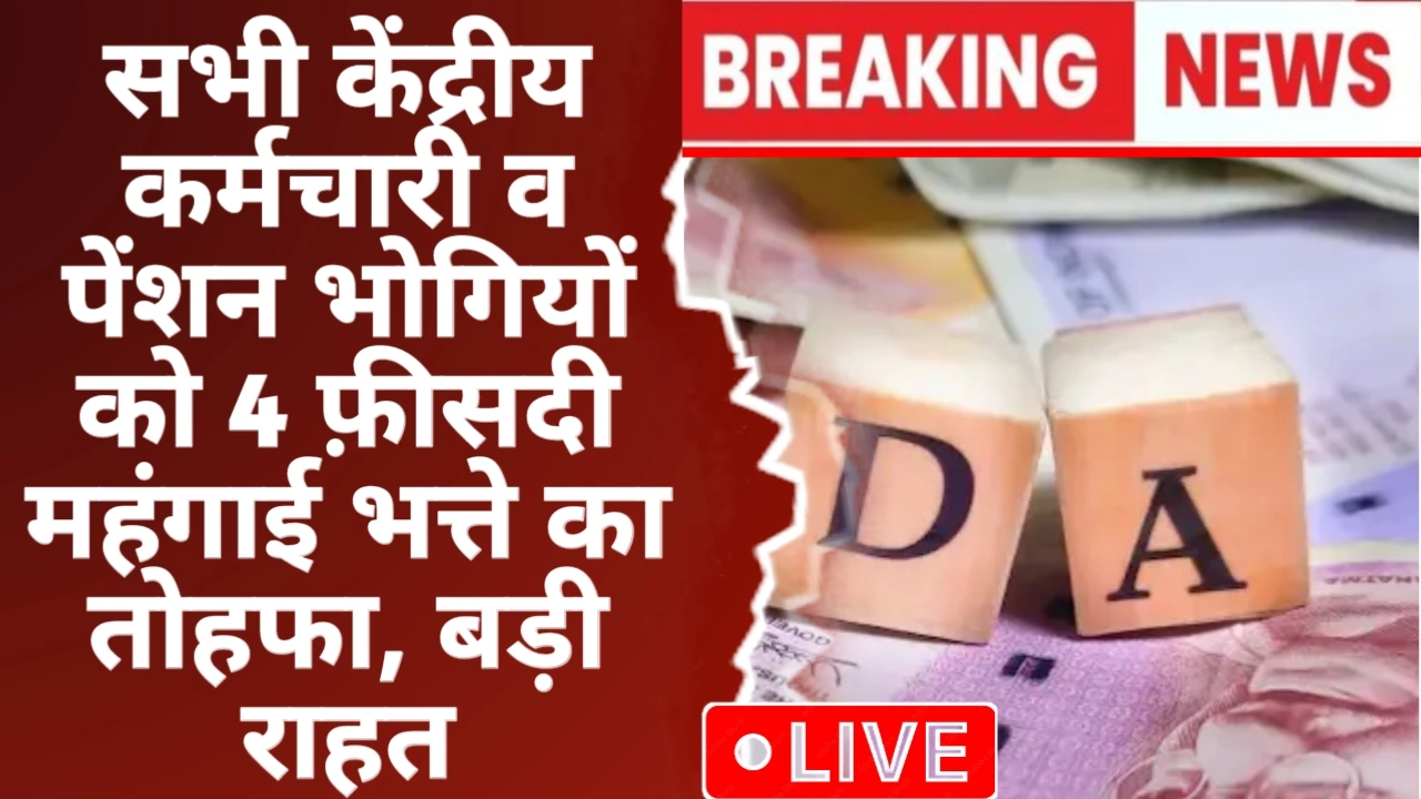 सभी केंद्रीय कर्मचारी व पेंशन भोगियों को 4 फ़ीसदी महंगाई भत्ते का तोहफा, बड़ी राहत DA Hike 2026 News